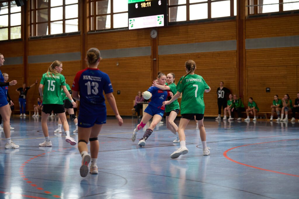 Entsprechend unter Strom starteten die Spielerinnen. Trotz eines schnellen HSG-Treffers nach 13 Sekunden durch Marie Nickles war es Bammental, die etwas besser ins Spiel kamen und nach fünf Minuten eine 4:1 Führung für sich verbuchen konnten.
